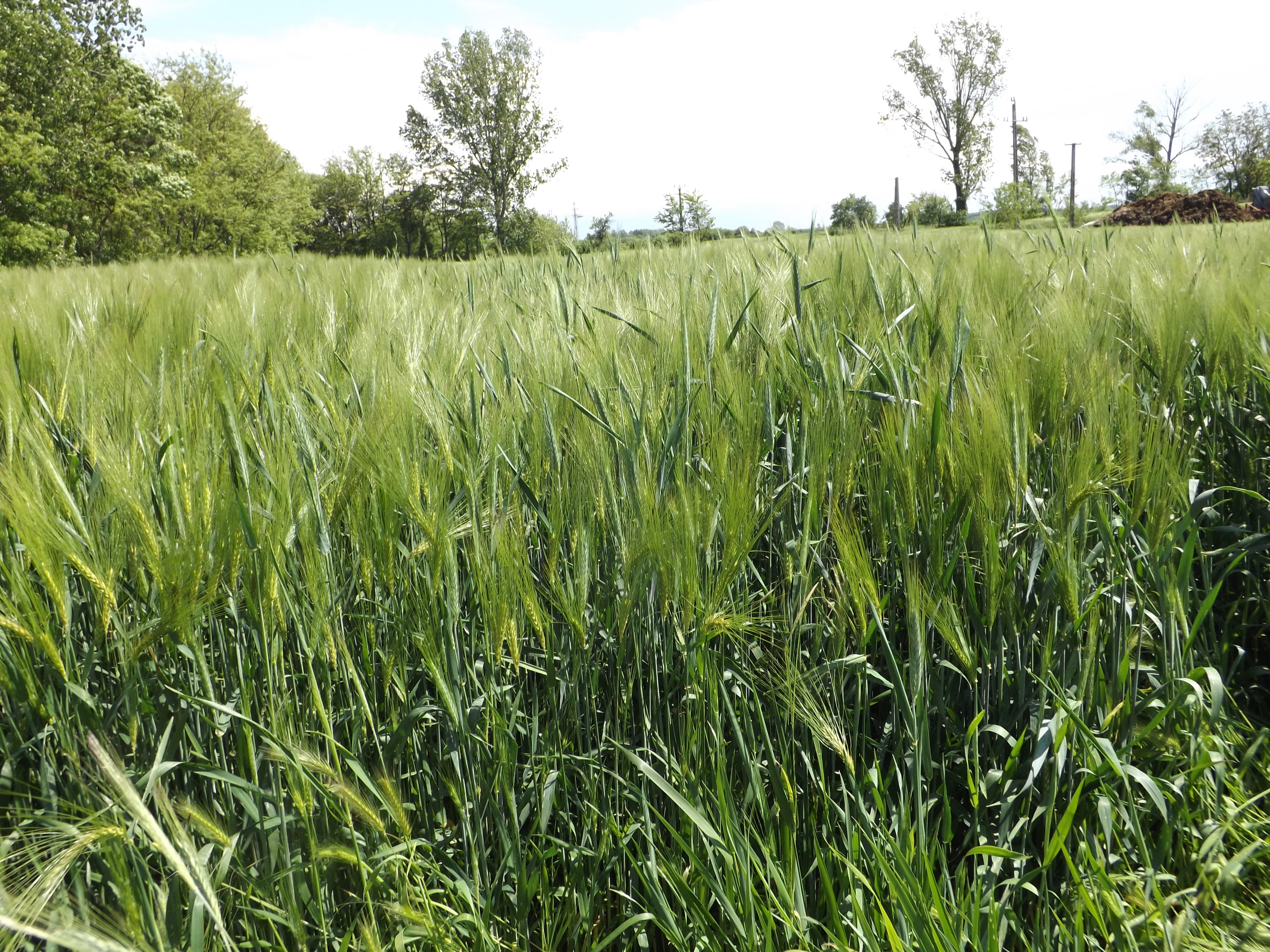Monoton szakasz következett, de szemünk előtt már bőszen lebegett a cél a Nagykereki templom tornyának képében. Ez extra erőt kölcsönzött, egymásra néztünk túratársammal, aki begyújtotta a fáklyákat és szaladós tempóra váltottunk. Mivel szemem előtt volt már a cél, így most rajtam sem vett erőt a hiszti, így nagyon gyorsan fogytak a méterek. Néha azért egy- egy fénykép kedvéért lassítottunk, hisz ezen a mezőn is akadt azért látnivaló. Hol egy zölden lengedező búzamező, hol egy a földből kibúvó kukorica, vagy éppen egy körbála "mező", vagy egy magányos betonkaró amin persze hogy ott volt az errefelé ritkaságnak számító kék jelzés.